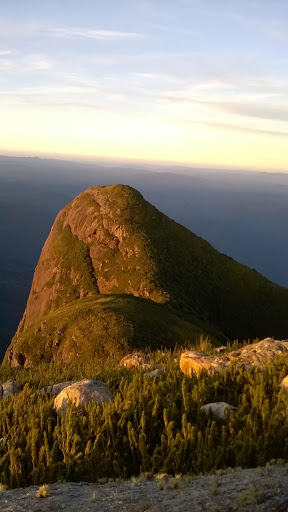 No cume do Pico do Paraná, enquanto esperávamos nossos amigos, descansamos e aproveitamos a paisagem. Às 17:00 hs o Otaviano e o Cruel chegaram – terceira repetição da via. Foi uma ocasião especial pois também chegavam o Fábio, o Ermínio,o Gean o e Glaucio, que haviam escalado a via Mar de Caratuvas. Será que em outra ocasião tantas pessoas haviam escalado no mesmo dia o Ibitirati? Não sei a resposta, mas 8 pessoas era um número fora do comum.
