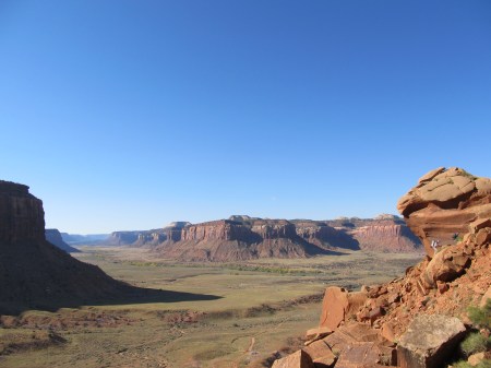 Após esta escalada tivemos que nos despedir de Simon, que iria voltar para Inglaterra, e lembrei que a vida também oferece momentos duros. Estávamos convivendo há quase 3 semanas com seu humor britânico, e me dei conta de que eu mesmo teria que deixar aquela realidade dentro de alguns dias. Estávamos de volta a Indian Creek, eu e Forest, destruídos por tantos dias consecutivos de escalada, e decidimos fazer uma caminhada no parque de Canyonlands para “descansar”. Esta caminhada acabou em um trajeto por paisagens de outro planeta, em 16km de trilha…